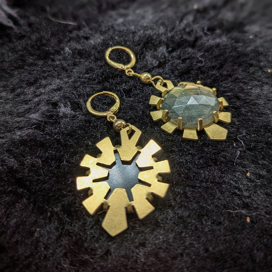 HYPERDRIVE Earrings and Pendant Set / Brass/ Labradorite