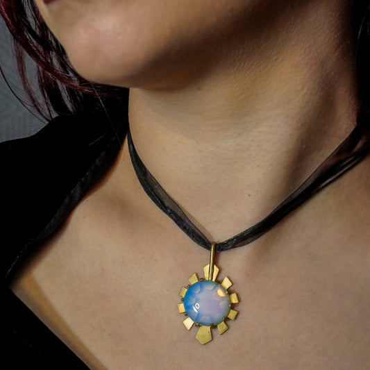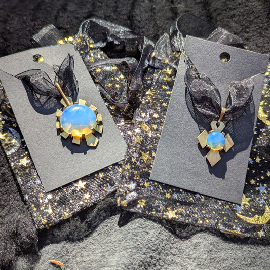 HYPERDRIVE Earrings and Pendant Set / Brass / Opalite