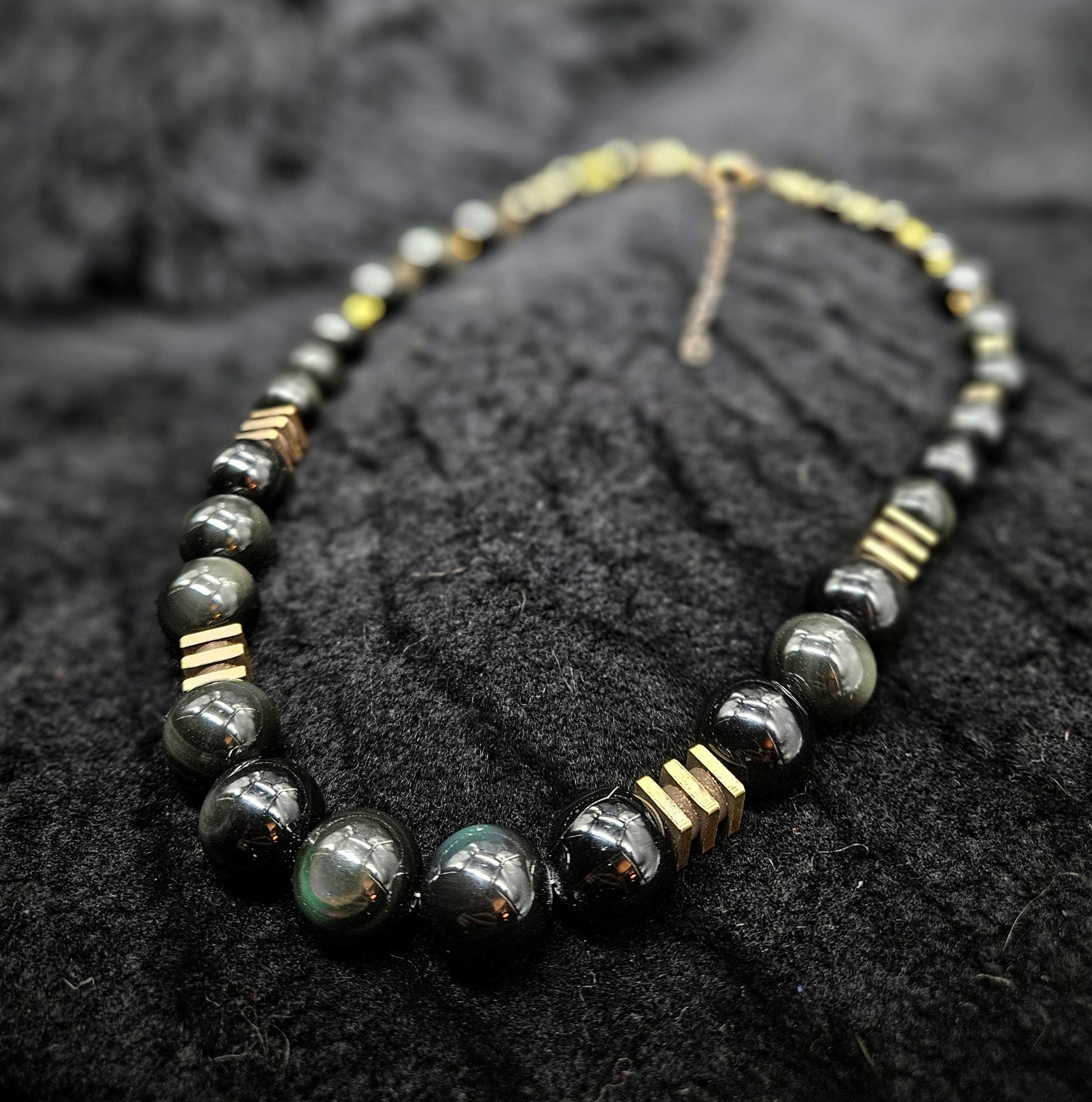 MIROKU Necklace / Rainbow Obsidian / Brass
